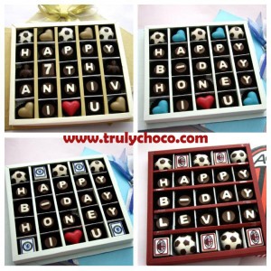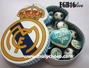 Edisi Exclusive Chocogift club bola dengan kotak berbentuk Logo dari Club bola kesayangan pasangan anda. Exlusive chocogift ini berisi 20pcs coklat berbentuk bola, coklat dengan logo club bola dan 1 coklat special berbentuk hati dengan tulisan “I Love You”. Cocok untuk hadiah ulang tahun, kado anniversary ataupun gift saat menyatakan cinta pada pasangan. Readystok untuk FC Barcelona, Real Madrid, Chelsea, Manchester United, ACmilan, Arsenal, Bayern Munchen dan Juventus.